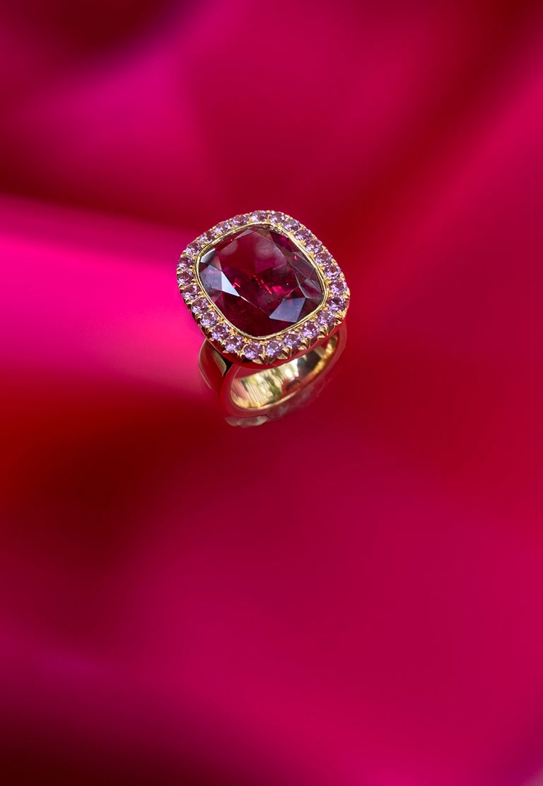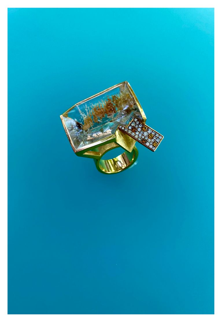 Wie ein Gebäude wollte ich einen Edelstein fassen und präsentieren, er sollte frei stehen, exponiert und von allen Seiten sichtbar sein. So entstand dieser Roségoldring mit einem Brillanten von 2,50ct, der in einer Stotzenfassung gehalten wird.