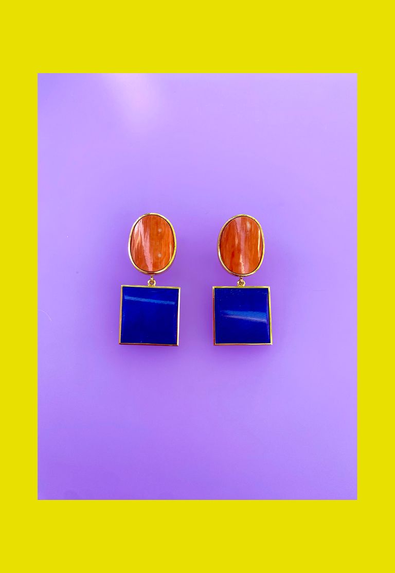 Schlichtheit, ein Farbton, ein Tropfen. Das filigrane Braun des Diamant Navette von 10,10ct steht im schönen Gegensatz zu dem starken Farbton der großen ovalen Moro-Koralle.