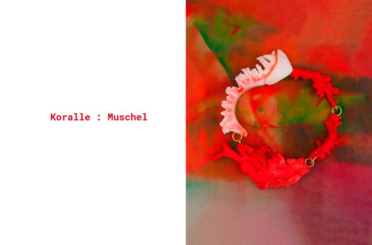eine Aussage treffen, interpretierbar sein. Ein großer Pfeil aus Koralle, die